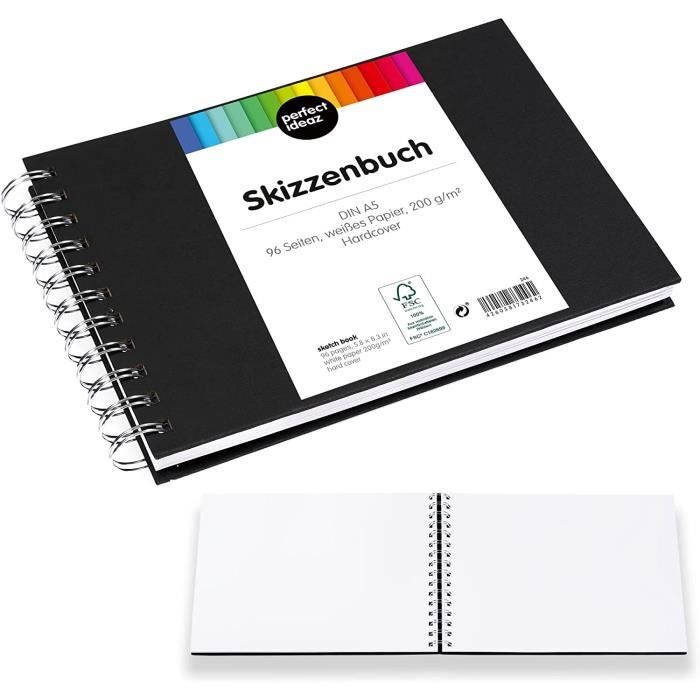 Avec plus de 50 ans d'expérience, notre équipe travaille en étroite collaboration avec des créatifs pour créer une gamme soigneusement conçue de carnets de croquis, journaux, toiles et outils créatifs essentiels Artway Carnet de Croquis multimédia Blanc recyclé Plat – 250 g/m² Entreprise familiale de troisième génération : Blue Acorn est une marque créative unique par une entreprise familiale de troisième génération basée dans le Lake District. Carnet à Dessin Relié, A4 – Papier Très épais (200 GSM) – à Spirales, pour les Enfants et les Professionnels, pour Dessiner et Réaliser des Croquis – 21 x 29 cm, 40 feuilles / 80 Pages Reliure à double spirale : avec une reliure à double spirale de grand diamètre, les étudiants et les artistes comptent sur notre carnet de croquis de luxe pour stocker et attacher divers articles tels que des tissus, des feuilles, des fleurs séchées, des coupures de journaux et des découpes de magazines. Explorez les caractéristiques exceptionnelles de notre carnet de croquis Blue Acorn recyclé format A4, soigneusement conçu pour répondre aux besoins des artistes et des étudiants. Papier cartonné 100 % recyclé 160 g/m² : un mélange parfait d'éco-conscience et d'expression artistique, le papier 160 g/m² est idéal pour une large gamme de supports artistiques, y compris les crayons, le fusain, l'encre et les lavages légers. Carnet de croquis recyclé format A4 paysage 29,7 x 21 cm - 70 pages... Carnet Durable Artistique Carnets De Croquis à Spirales à Couverture Rigide Pour Artistes, Format A3, A4, A5, 160 G/m², Papier à Dessin Blanc Recyclé. 60 Pages/30 Feuilles (A4A5-2Pack Papier Milimitré
